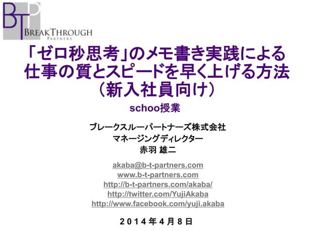 「ゼロ秒思考」のメモ書き実践による、仕事の質とスピードを早く上げる方法(新入社員向け) 先生:赤羽 雄二