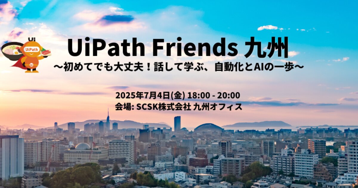 2025年7月4日(金)開催 UiPath Friends 九州 ~初めてでも大丈夫!話して学ぶ、自動化とAIの一歩~ https://uipath-friends.doorkeeper.jp/events/184375