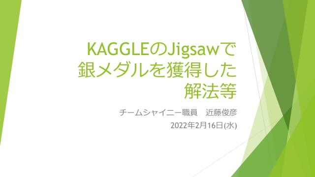 結果 最終順位は Public Leaderbord6位、 Private Leaderbord7位。 賞金を狙える位置にいたが、 あと一歩届かない結果に。 金メダルは持ち帰れた。 少しシェイクダウンして、 LBを意識しすぎた感があった。 5