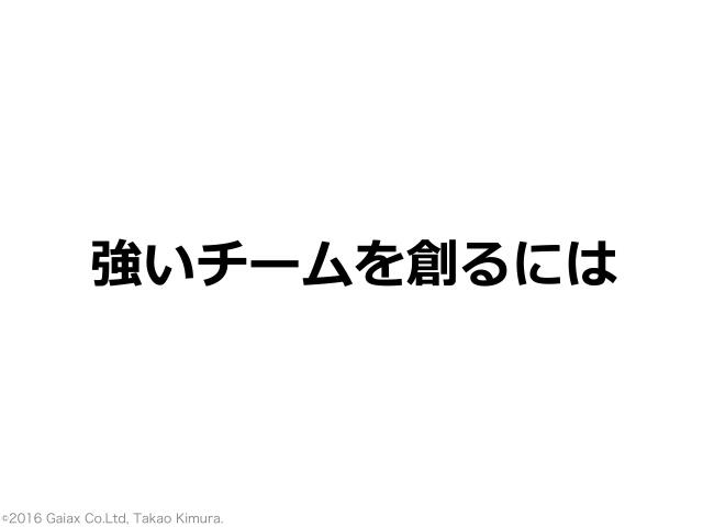 フィーチャーチーム ⻑期間存続する l チームはより⾼いパフォーマンス を発揮するために、⼀緒に居続け る。そして時間を掛けて新しい フィーチャーを引き受ける n クロスファンクショナルでクロスコ ンポーネント n 理想的には同じ場所にいる n 全てのコンポーネントや領域(分析、 プログラミング、テスト)を超え、 完全なる顧客中⼼のフィーチャーで 作業する n 専⾨家で構成される n スクラムでは、通常は7±2⼈ n 『大規模スクラム Large-Scale Scrum(LeSS)』 P.77 より Copyright© Kanataku,LLC Takao Kimura.