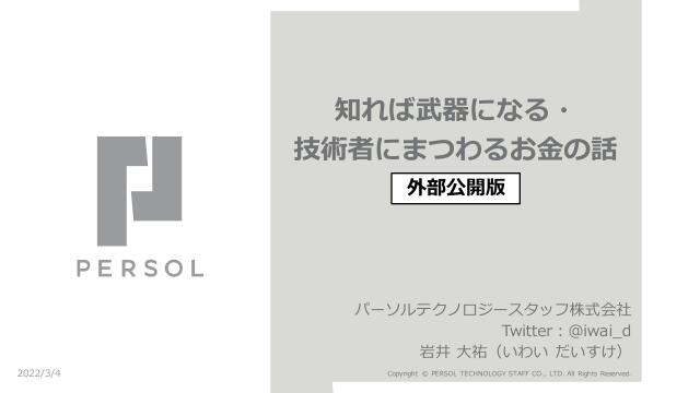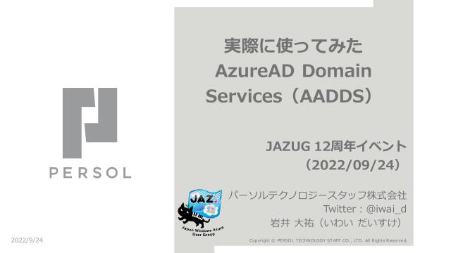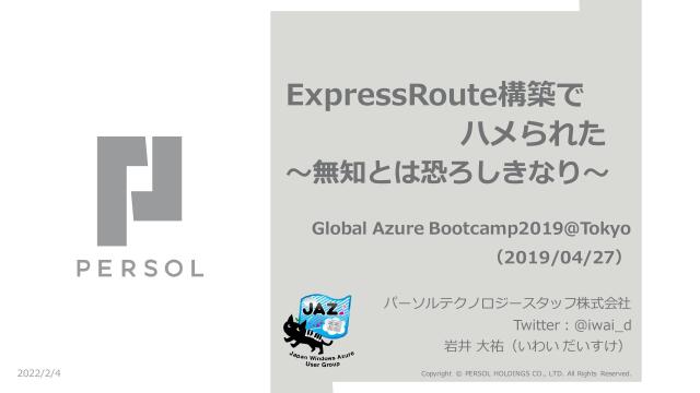 初めてのAzure構築 ~ 契約のトラップに 巻き込まれたお話 ~ JAZUG 8周年イベント(2018/9/22) パーソルテクノロジースタッフ株式会社 Twitter:@iwai_d 岩井 大祐(いわい だいすけ) 2022/2/3 Copyright © PERSOL HOLDINGS CO., LTD. All Rights Reserved.