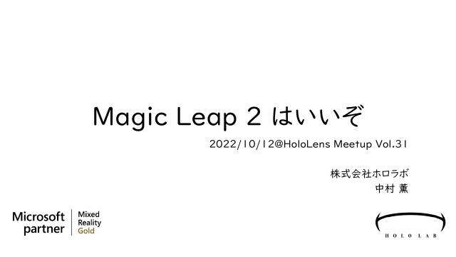 Magic Leap 2 概要 最終更新日 2022/09/11 株式会社ホロラボ 中村 薫