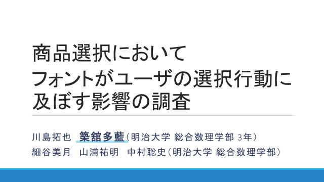 背景 文字を適切にデザインすることは重要 • 適切なフォント選びが商品の魅力を高める [Lewis, 2013] • フォントは商品の選択行動へ影響する [川島, 2019][濱野, 2019] Rich and creamy tomato soup Rich and creamy tomato soup