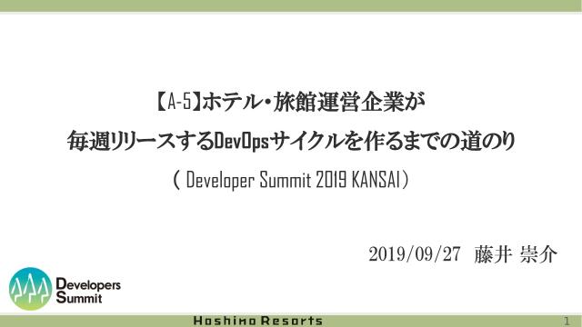 【13-D-4】創業105年の旅館運営企業が実現した 毎週リリースするチームの作り方 ( Developers Summit 2020) 2020/02/13 藤井 崇介 1
