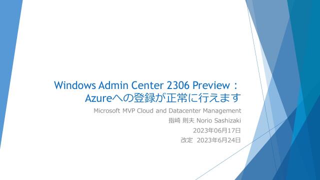 Windows Admin Center 2211と Windows Admin Center in Azure :2023年3月 Microsoft MVP Cloud and Datacenter Management 指崎 則夫 Norio Sashizaki 2023年03月18日