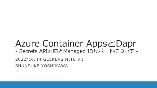 自己紹介 Shunsuke Yoshikawa X: https://x.com/ussvgr Qiita: https://qiita.com/ussvgr ⚫ 所属: 株式会社エーピーコミュニケーションズ ⚫ 普段の仕事: Azure×コンテナ中心のインフラ構築(AKSとかContainer Appsとか) ⚫ MICUG クラウドネイティブ/内製開発分科会オーガナイザー ⚫ Platform Engineering Meetup 運営メンバー ⚫ Microsoft MVP (Microsoft Azure) 2023/06~ ⚫ 愛知県在住