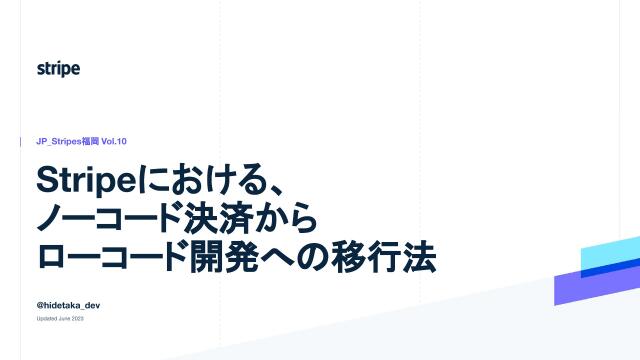 Stripeにおける、 ノーコード決済から ローコード開発への移行法 / JP_Stripes Fukuoka 202307