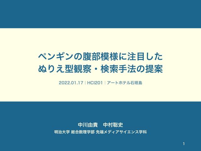 ペンギンの腹部模様に注目したぬりえ型観察・検索手法の提案