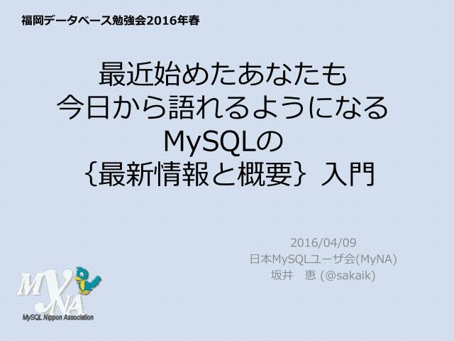 福岡DB勉強会2016春・MySQLの{最新情報と概要}入門