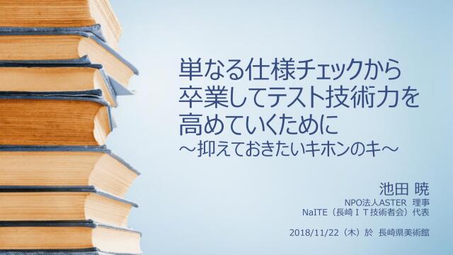 JaSST1'18 Kyushu 「単なる仕様チェックから卒業してテスト技術力を高めていくために」