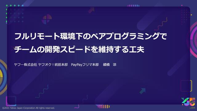 フルリモート環境下のペアプログラミングでチームの開発スピードを維持する工夫 #yjtc / YJTC21 C-6