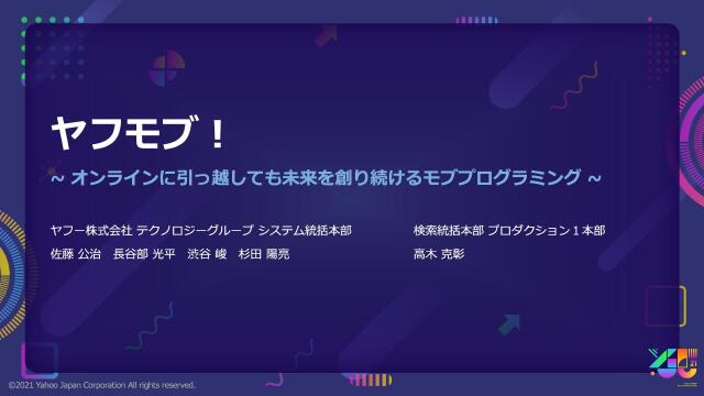 ヤフモブ! 〜オンラインに引っ越しても未来を創り続けるモブプログラミング〜 #yjtc / YJTC21 C-7