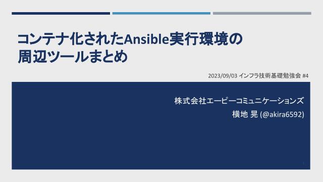コンテナ化されたAnsible実行環境の周辺ツールまとめ(インフラ技術基礎勉強会#4)