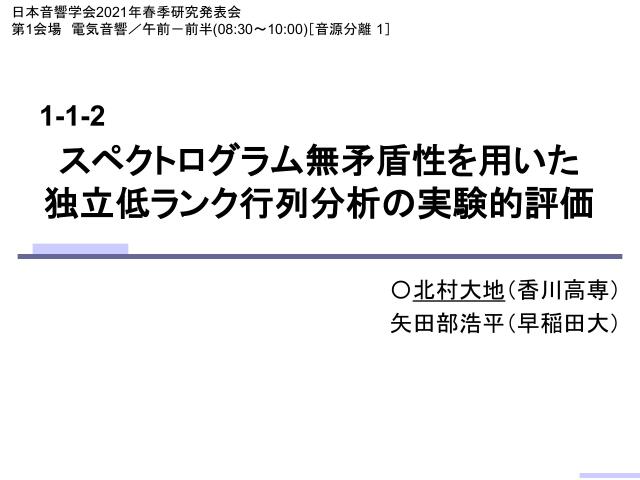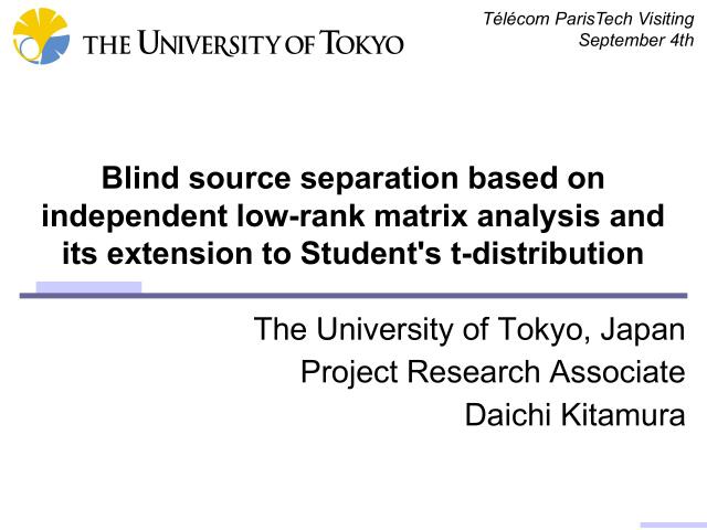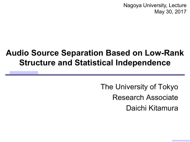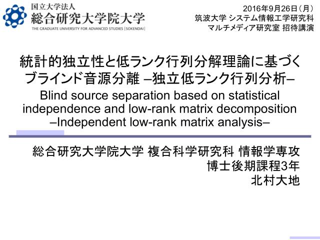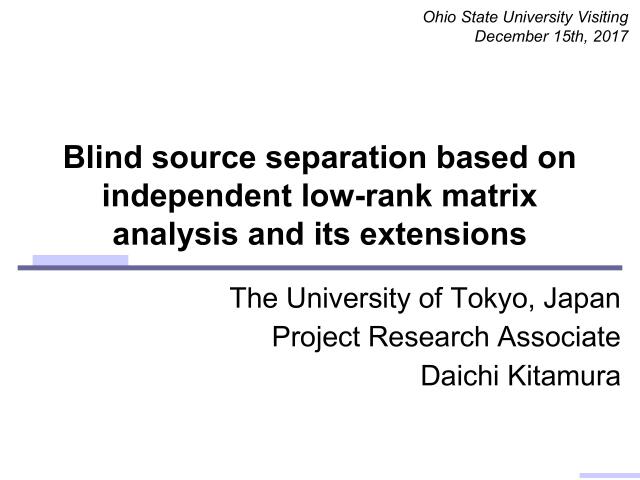 統計的独立性と低ランク行列分解理論に基づくブラインド音源分離 –独立低ランク行列分析– Blind source separation based on statistical independence and low-rank matrix decomposition –Independent low-rank matrix analysis–