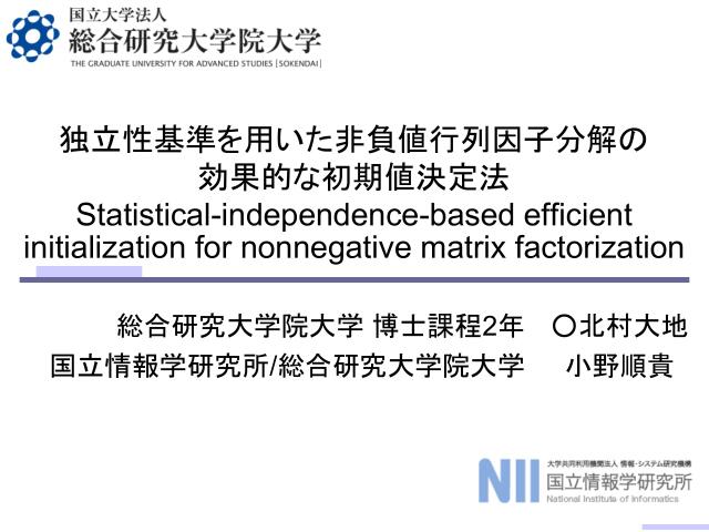 独立性基準を用いた非負値行列因子分解の効果的な初期値決定法(Statistical-independence-based efficient initialization for nonnegative matrix factorization)