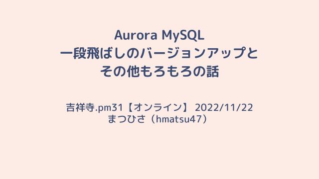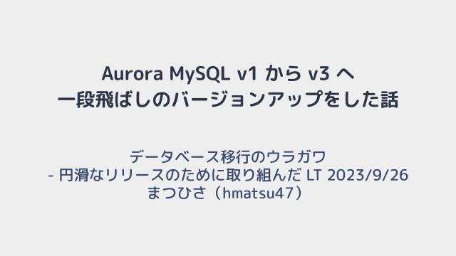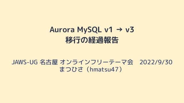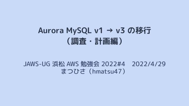 Aurora MySQL v1 → v3 移行計画 : https://zenn.dev/hmatsu47/books/aurora-mysql3-plan-book