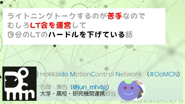 Scientist/Developer Relations. Hokkaido MotionControl Network(#DoMCN)のお知らせ担当。 実験系研究者のデジタルツール導入のお手伝いが本業です。