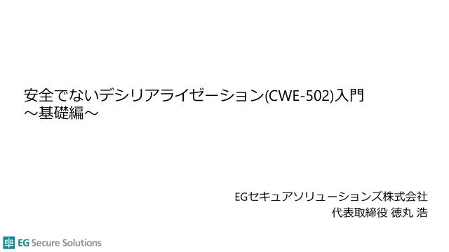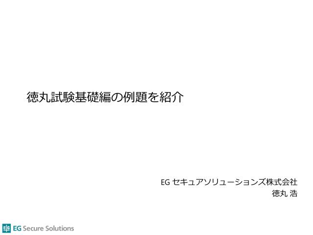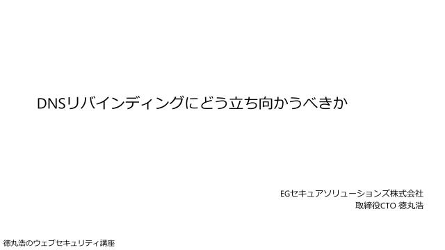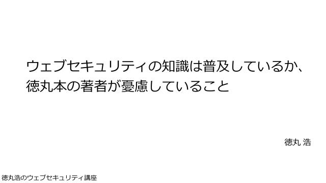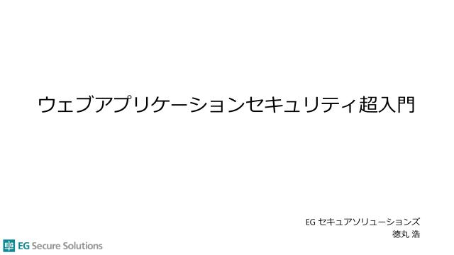 徳丸本の中の人 OWASP Japanアドバイザリーボード EGセキュアソリューションズ取締役CTO IPA非常勤職員