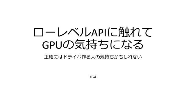 ローレベルAPIに触れてGPUの気持ちになる